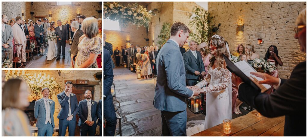 A little tip. Luckily, one person who had their baby, had packed some sun cream and it was shared amongst most of the guests (always pack an emergency bottle in any vanity pack you do for your guests, its amazing how many weddings don’t have any and results in lots of red patches at the end of the night). May in the UK can mean literally anything with the weather, so prep is essential. Also the great weather meant Jess & Graham had the option of getting married outdoors, in the glade thats offered at Cripps Barn too. It’s a sheltered area away from the barn and is lovely for a secluded ceremony. It’s a toughie though as the indoor ceremony is so beautiful in the barn too. It’s definitely working through the pros and cons.