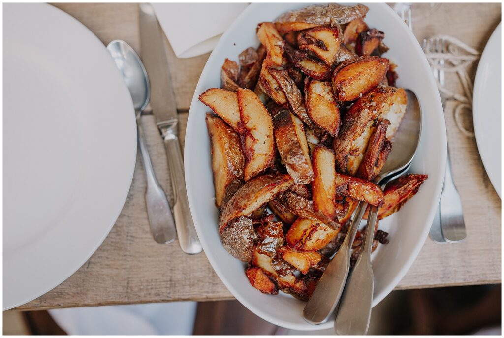 Never pick your wedding venue based on loving it in its best light. It can cause you all kinds of needless worry on the run up. It’s one of the reasons I love and will always recommend Cripps Barn in Cirencester. A bit of a secluded haven when you drive it. Feeling like you are in the middle of nowhere, surrounded by The Cotswold countryside, fields galore, trees and big architectural barns on site. The grounds have so much to offer when you want to welcome your favourite people to celebrate with you. However, the barn inside is equally as breath taking. Big high vaulted ceilings, stone flagged floors, with an annexe full of light. It really is a venue that can look after you whatever the weather. With the addition of fabulous chefs who cook over coals and work with locally and fine sourced produce, it’s all bases covered.